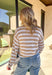 Lightweight, breezy, and perfect for spring layering, this taupe and white striped sweater by Wishlist is an effortless staple. The open knit design keeps it airy and easy to wear, making it ideal for mild days and cool evenings. With classic stripes and a relaxed fit, it’s the kind of sweater you can toss on over a tank, swimsuit, or dress and instantly look put together.