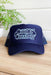 There are few things cooler than a cowboy, but even the coolest ones need a reminder to cool their jets every once and a while! This navy trucker is embroidered with one of our favorite phrases featured here in a baby blue thread! This trucker is the perfect addition to your pool day!