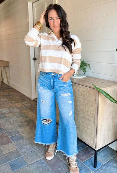 Soft, cozy, and polished—this light gray sweater is the perfect mix of casual comfort and elevated detail. The collared neckline gives it a refined...