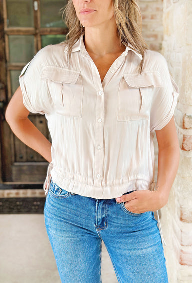 This light brown faux leather top by Fate is the perfect mix of sleek and modern. Designed with a flattering v-neckline and short sleeves, it adds ...