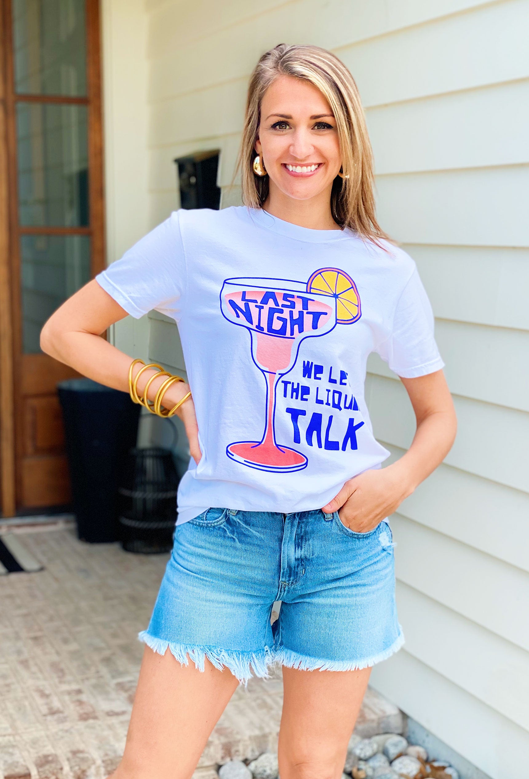This one is for those of us who have ever let the liquor talk when maybe we shouldn't have... Featuring a lyric from one of our favorite country songs, you know the one, this tee is an ode to the nights we don't remember with the people we will never forget! We won't be forgetting this tee anytime soon either!