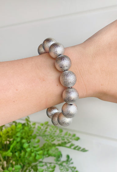 Introducing the All Eyes On You Bracelet! This beautiful silver ball beaded bracelet is perfect for stacking with your favorite bracelets. The chun...