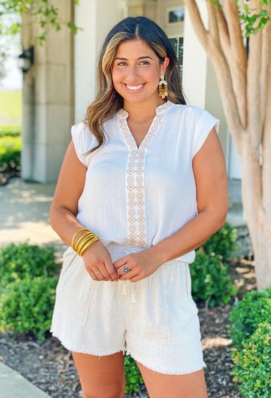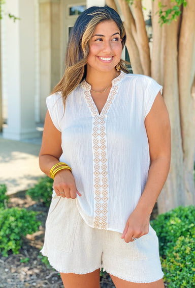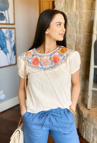 This ecru long sleeve top by Entro is the perfect blend of cozy neutrals and fall charm. Designed with puff sleeves and beautiful floral embroidery...