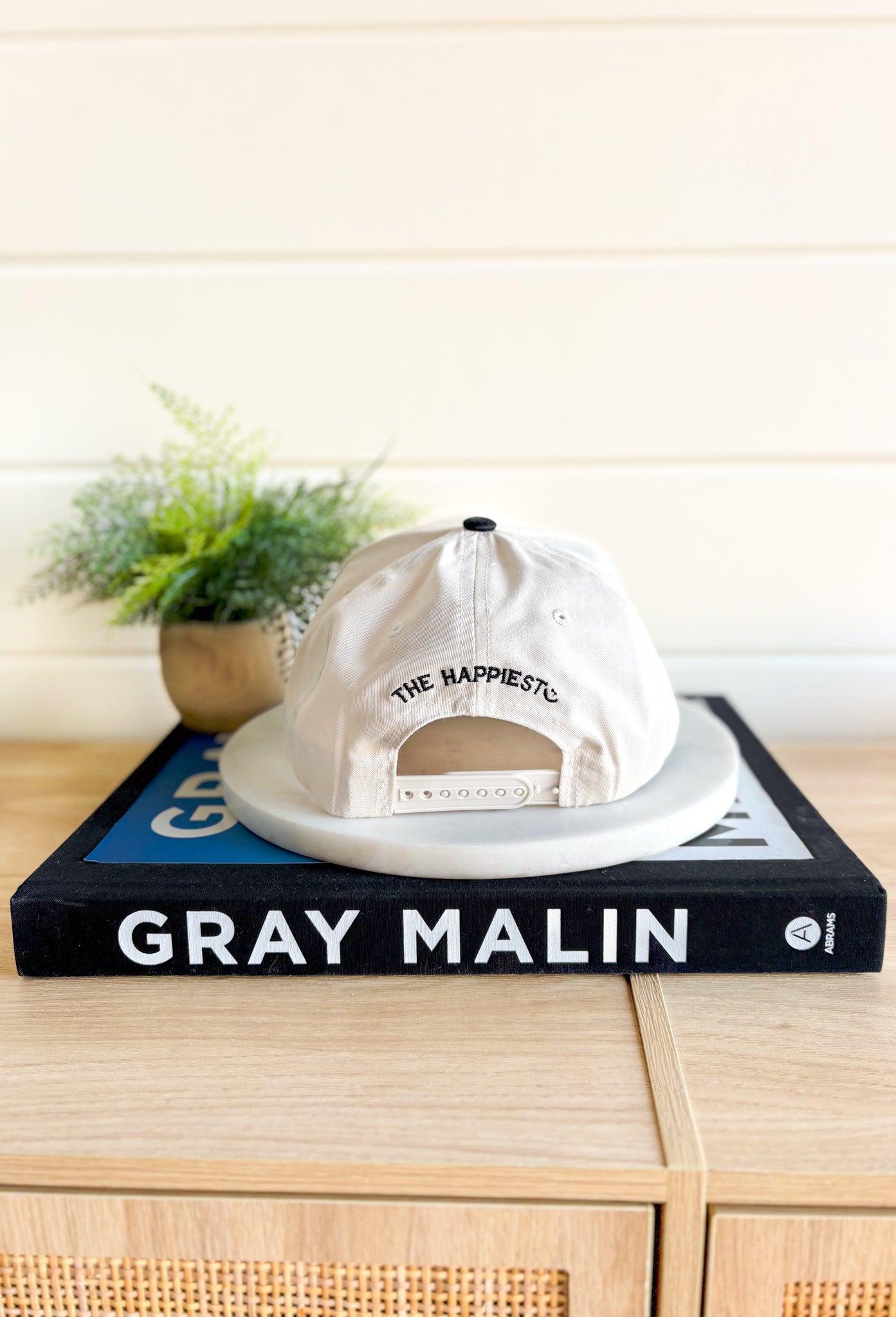 Introducing The Join The Club Trucker Hat! This neutral and black two-tone trucker hat features an embroidered message that says "The Happiest, Join The Club". Join the club of happiness with this stylish and comfortable hat, ready to accompany you on all your adventures.