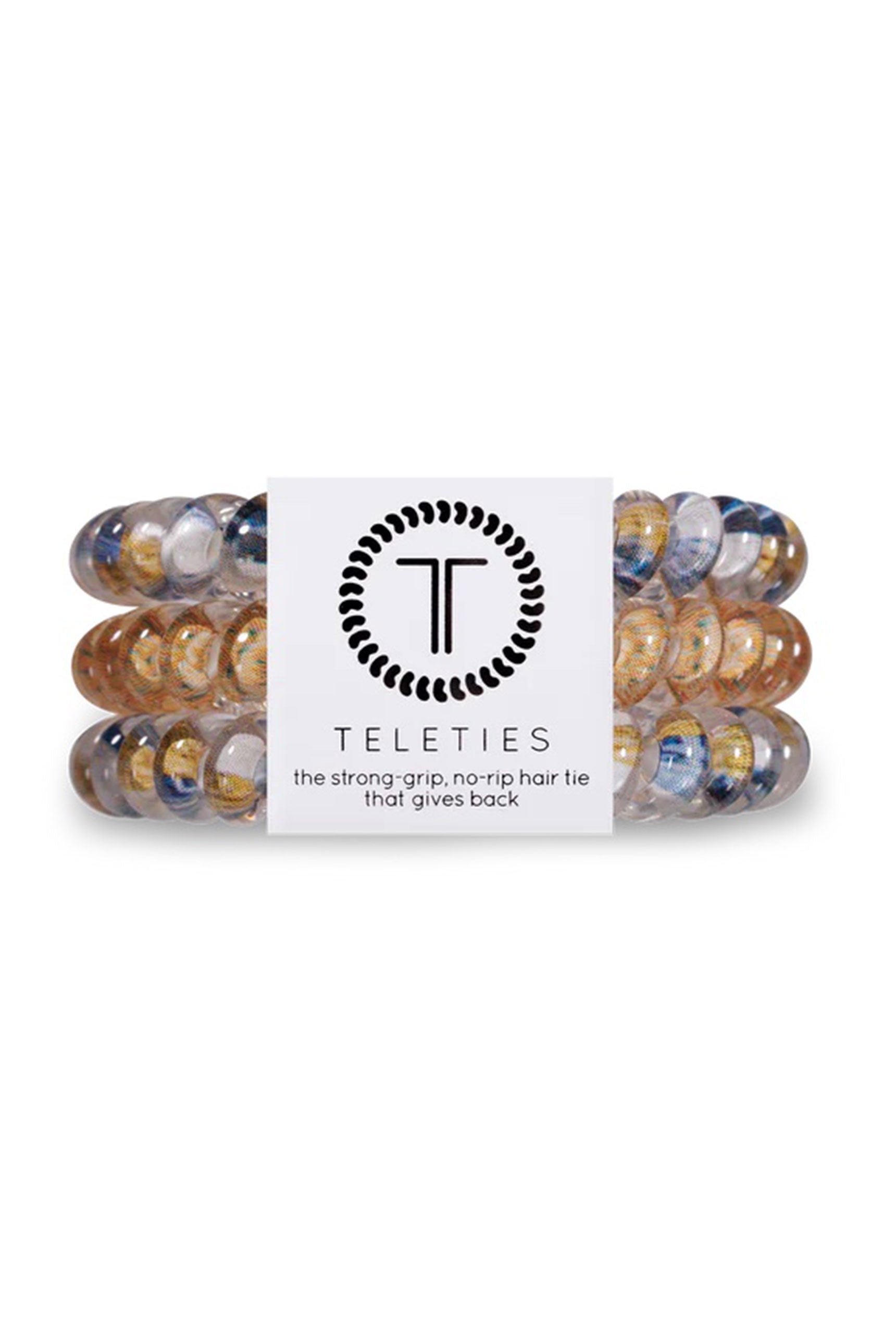 Pull your hair back in style! Whether in your hair or on your wrist, TELETIES always look stylish! The perfect hair ties for all year long! You will find yourself constantly reaching for these! Hold your hair and enhance your style with TELETIES. The strong grip, no rip hair tie that doubles as a bracelet. Strong, pretty and stylish, TELETIES are designed to withstand everyday demands while taking your look to the next level.